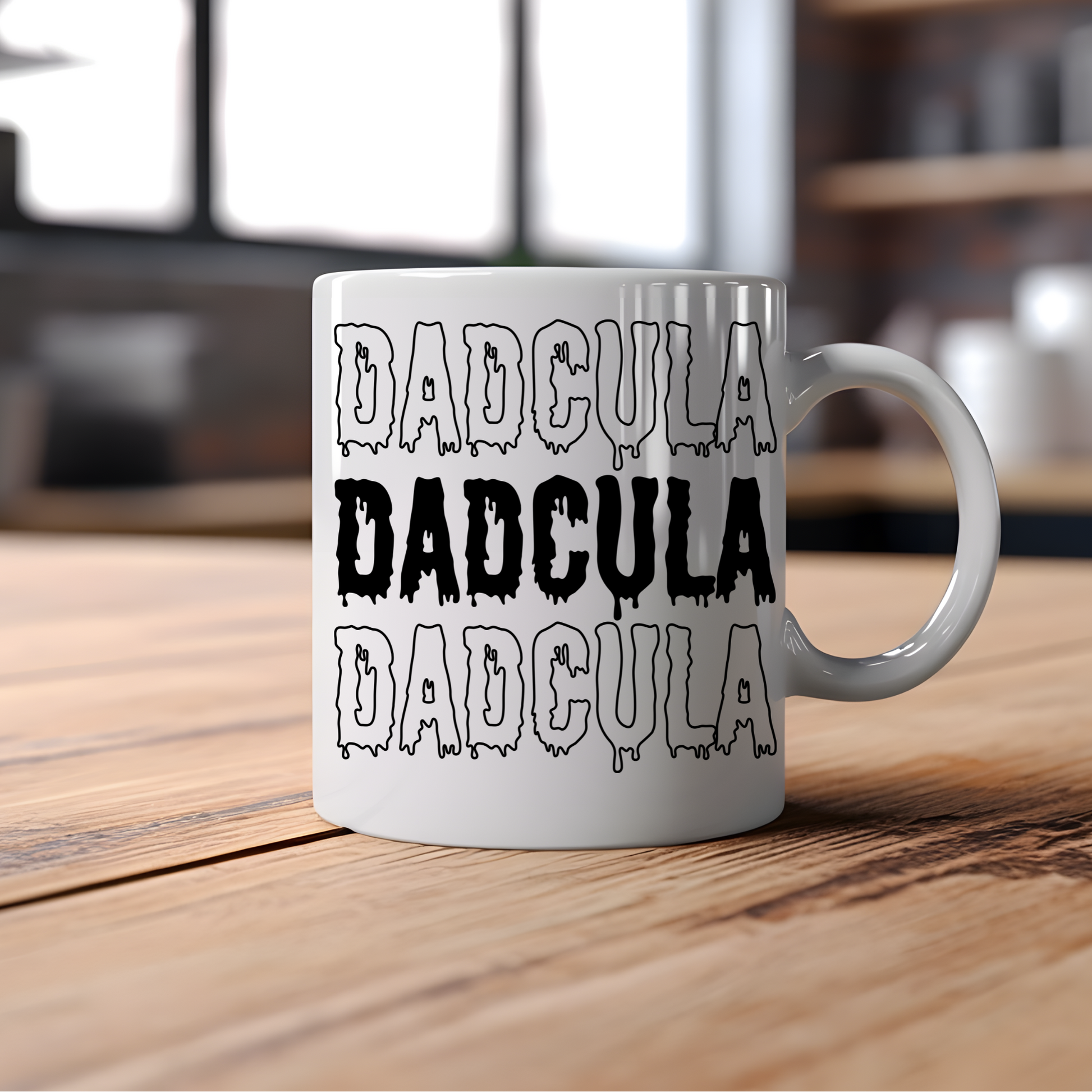 Celebrate dad’s spooky sense of humor with this Dadcula Coffee Mug! Featuring bold dripping gothic letters, this mug is perfect for dads who love Halloween, vampires, and a strong cup of coffee.